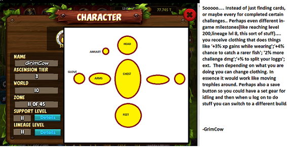 Update on the sac orb, the left side is what you start with and what you get when you click the sacrifice button on the right side, the right side is how it looks when you click on the orb. Generally think it might be possible to have all your sac stuff in one window and only part of it updates similar to how you go in guild i guess. I honestly think the sacrifice page and the orb page on their own aren't needed to be windows on their own. I would also to be like this in fishing the sacrificial hut, since as is now you just do sacrifices and then you have to go back to orbs, it's not really that convenient.