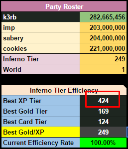 After cell B241, inferno levels are skipped and as a result, Inferno Tier Efficiency cells (S11:S15) aren't accurate. For example:
